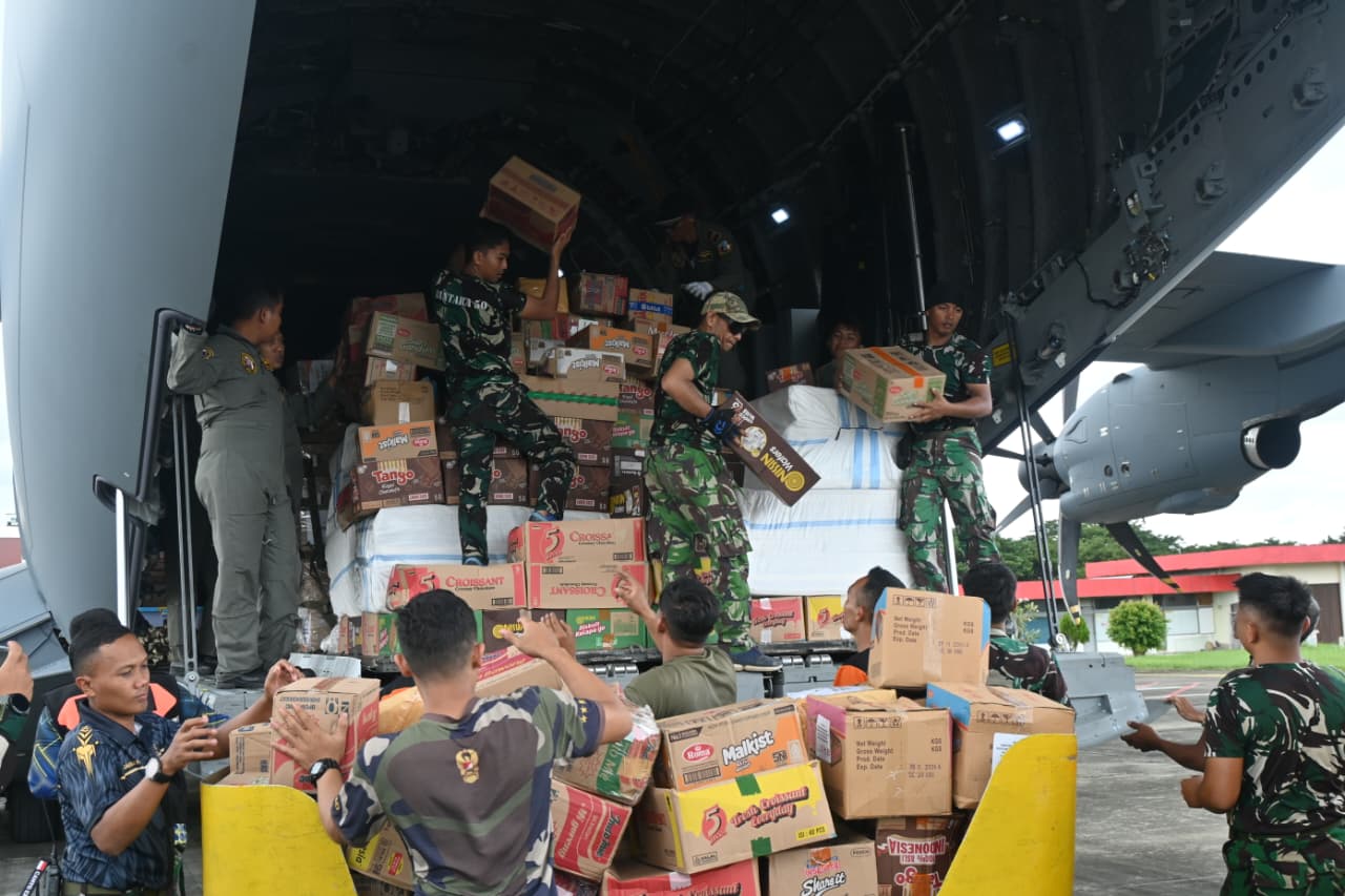 Danlanud Sultan Iskandar Muda, Kolonel Nav Sudaryanto, S.M, yang juga menjabat Dansatgasud Aceh, memastikan seluruh bantuan akan langsung ditangani dan didata oleh tim BNPB di Pos Pendamping Nasional Bencana Hidrometeorologi Provinsi Aceh.