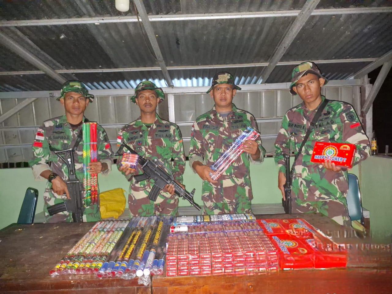 Dalam operasi tersebut, Satgas Pamtas berhasil mengamankan barang bukti berupa 1 karung dan 1 kardus besar yang seluruhnya berisi petasan. Diduga petasan tersebut akan diselundupkan untuk dijual dengan harga lebih tinggi di Timor Leste menjelang momen perayaan Natal dan Tahun Baru. )@Red