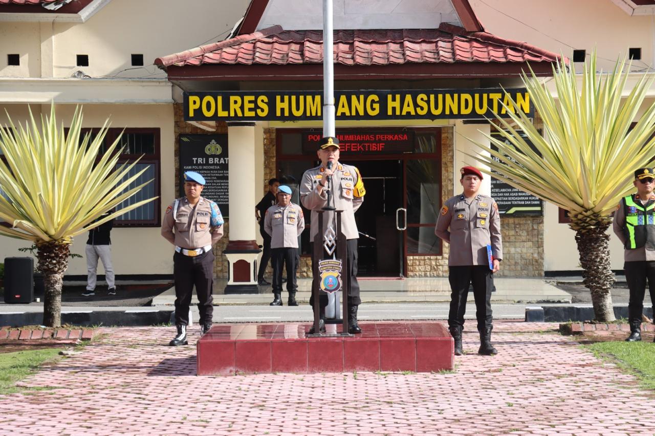 HUMBAHAS. KLIK7TV. CO. ID – Menjelang Hari Raya Idul Fitri 1447 H/2026 M, Kapolres Humbang Hasundutan AKBP Adi Nugroho, S.H., S.I.K., memimpin apel pagi yang dirangkaikan dengan kegiatan pembagian parsel Lebaran kepada personel, bertempat di Lapangan Apel Polres Humbahas, Rabu (18/3/2026).