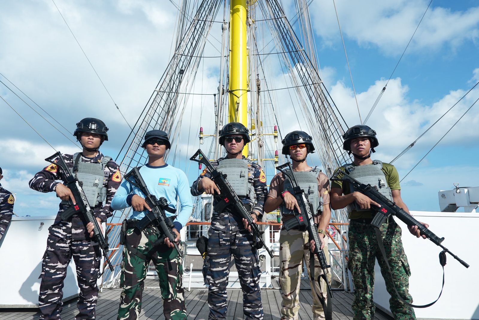 Saat melaksanakan lintas laut (Linla) menuju Belawan dalam rangka pelayaran Muhibah Diplomasi Duta Bangsa dan Latihan praktek (Lattek) Kartika Jala Krida (KJK) Tahun 2026, peserta ASEAN Plus Cadet Sail (APCS) 2026 melakukan latihan Visit Board Search Seizure (VBSS), yang diselenggarakan di atas Geladak KRI Bima Suci. Rabu (1/4).