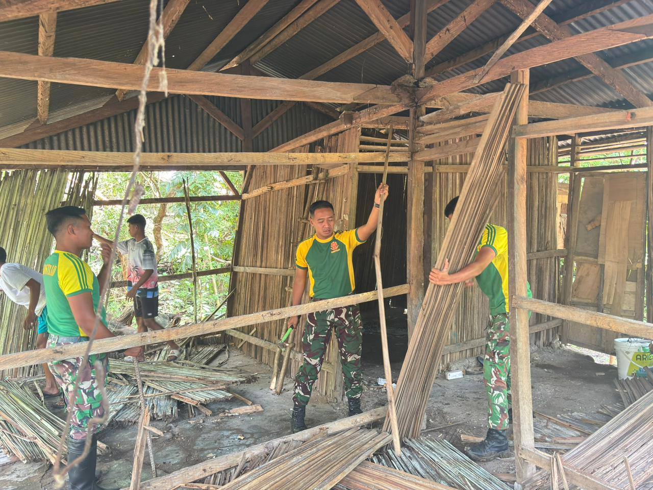 NAPAN, KLIK7TV.CO.ID – Satgas Pamtas RI–RDTL Sektor Barat Yonarhanud 2 Kostrad melalui Pos Napan Bawah melaksanakan kegiatan karya bakti dengan membantu pembangunan rumah salah satu warga di Desa Napan, Kecamatan Bikomi Utara, Kabupaten Timor Tengah Utara (TTU), pada Selasa (07/04).