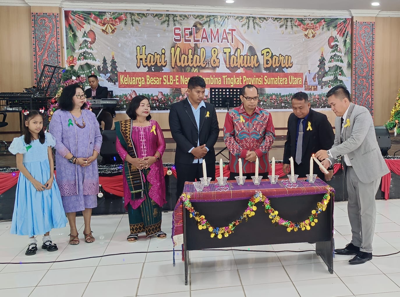 Dalam sambutannya, Bapak Dr. Lambok Pamancar Saragi selaku Pengawas SLB E Negeri Pembina menyampaikan ucapan Selamat Natal dan Tahun Baru kepada seluruh keluarga besar sekolah. Beliau mengapresiasi semangat dan keteguhan hati seluruh warga sekolah yang tetap melaksanakan perayaan Natal meskipun sempat tertunda akibat bencana alam.