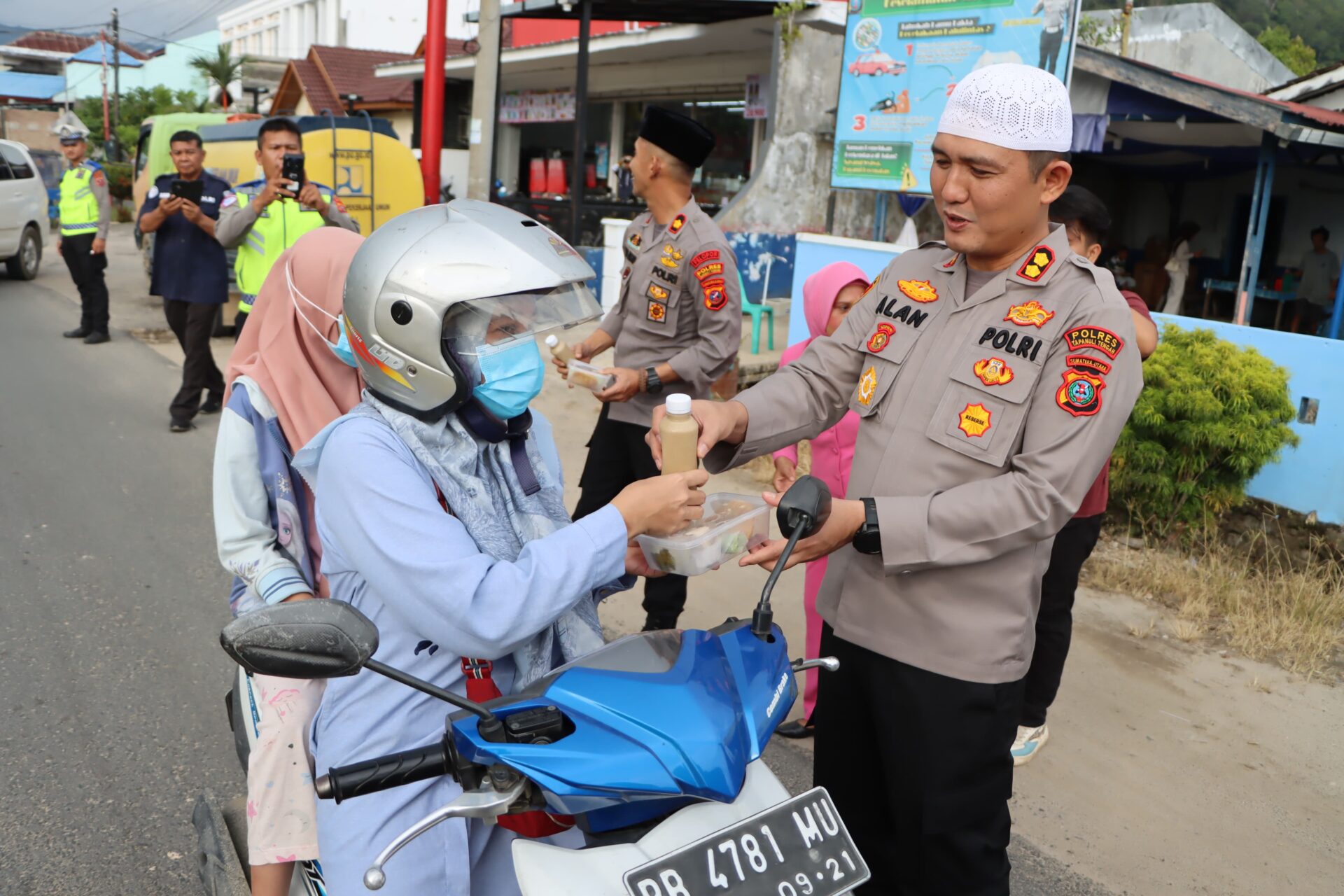 Selain berbagi keberkahan, kegiatan ini juga dimanfaatkan petugas untuk memberikan imbauan secara humanis kepada para pengguna jalan agar tetap mengutamakan keselamatan dan tertib berlalu lintas saat menjelang waktu berbuka puasa (ngabuburit).@(an)