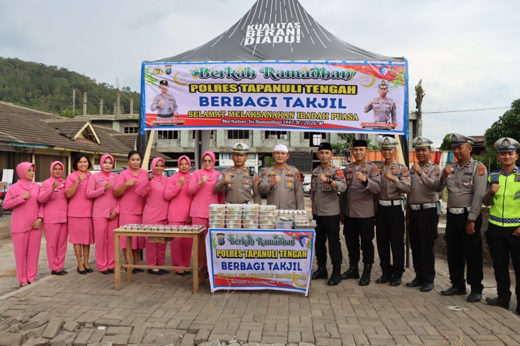 TAPTENG. KLIK7TV.CO.ID – Dalam semangat berbagi di bulan suci Ramadan, Kepolisian Resor (Polres) Tapanuli Tengah menggelar aksi simpatik dengan membagikan ratusan paket takjil kepada masyarakat dan pengendara yang melintas di Jalan Sibolga-P. Sidempuan, tepatnya di Simpang DPR Pandan, Kecamatan Pandan, Kabupaten Tapanuli Tengah. Selasa (3/3/2026) sore.