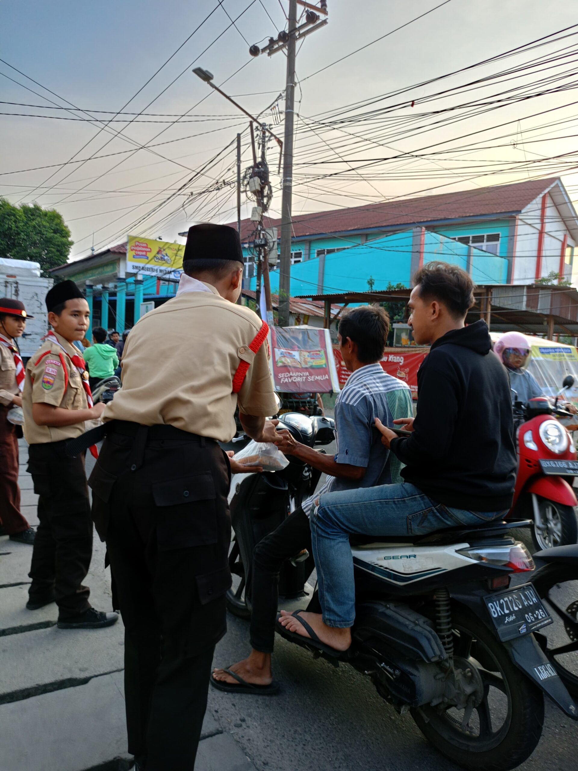 Pramuka UPT SMP Negeri 6 Medan membagikan 200 Paket Takjil yang di bagikan di sekitar Jalanan UPT SMP Negeri 6 Medan Jl. Bahagia No 42 Kel. Teladan Timur Kec.Medan Kota