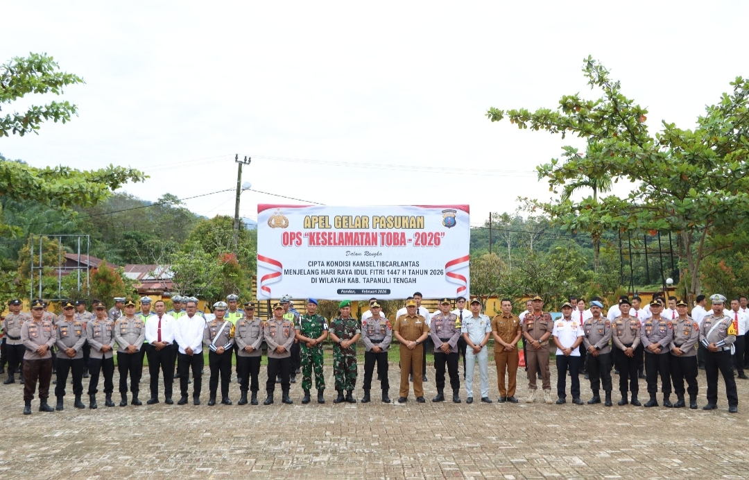 TAPTENG, KLIK7TV.CO.ID – Dalam rangka menciptakan situasi keamanan, keselamatan, ketertiban, dan kelancaran lalu lintas (Kamseltibcarlantas) yang kondusif menjelang Hari Raya Idulfitri 1447 Hijriah, Polres Tapanuli Tengah menggelar Apel Gelar Pasukan Operasi Kepolisian Kewilayahan “Keselamatan Toba 2026”. Apel ini dilaksanakan di lapangan Mapolres Tapanuli Tengah, Senin (2/2/2026) pagi.