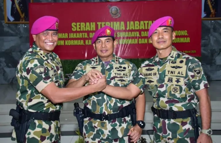 JAKARTA, KLIK7TV.CO.ID – Komandan Korps Marinir (Dankormar) Mayor Jenderal TNI (Mar) Endi Supardi, memimpin Serah Terima Jabatan (Sertijab) enam jabatan strategis, di lingkungan Korps Marinir Tentara Nasional Indonesia Angkatan Laut (TNI AL), di Jakarta, Sabtu (8/3/2025).