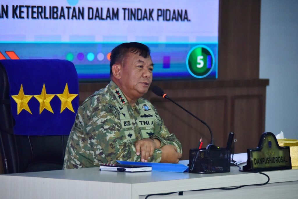 JAKARTA, KLIK7TV.CO.ID —Komandan Pusat Hidro-Oseanografi TNI Angkatan Laut (Danpushidrosal) Laksamana Madya TNI Dr. Budi Purwanto, S.T., M.M., memberikan Jam Komandan kepada seluruh prajurit dan PNS Pushidrosal bertempat di GOR Bulutangkis Pushidrosal, Ancol, Jakarta Utara, Senin (16/3/2026).