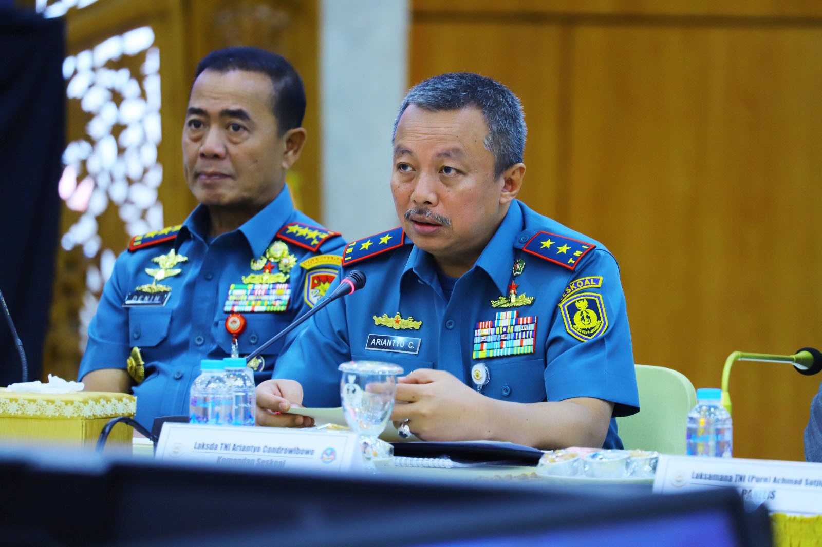CIPULIR, KLIK7V.CO.ID – Komandan Sekolah Staf dan Komando Angkatan Laut (Danseskoal) Laksamana Muda TNI Ariantyo Condrowibowo menghadiri Panel Discussion tahun 2025 yang diinisiasi oleh Pusat Pengkajian Maritim (Pusjianmar) Seskoal dengan tema “Proyeksi Kekuatan TNI Angkatan Laut: Reorganisasi TNI dalam Penyusunan Armada yang Sesuai dengan SSAT”, bertempat di pendopo gedung Jos Soedarso Seskoal, Cipulir, Kebayoran Lama, Jakarta Selatan, Senin (15/12/2025).
