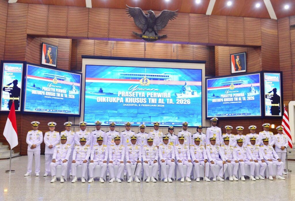 JAKARTA, KLIK7TV.CO.ID – Komandan Sekolah Staf dan Komando Angkatan Laut (Danseskoal) Laksamana Muda TNI Ariantyo Condrowibowo menghadiri upacara Prasetya Perwira Pendidikan Pembentukan Perwira Khusus (Praspa Diktukpasus) TNI Angkatan Laut TA 2026 personel berprestasi Sea Games Thailand, dengan Inspektur Upacara (Irup) Kepala Staf Angkatan Laut (Kasal) Laksamana TNI Dr. Muhammad Ali, S.E, M.M., M.Tr.Opsla., bertempat di auditorium Denma Mabesal, Cilangkap, Jakarta Timur, Kamis (05/02/2026).