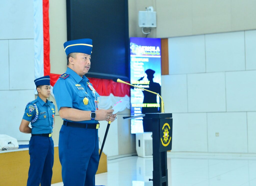 CIPULIR, KLIK7TV.CO.ID – Komandan Sekolah Staf dan Komando Angkatan Laut (Daneskoal) Laksamana Muda TNI Ariantyo Condrowibowo selaku Inspektur Upacara (Irup) memimpin upacara peringatan Hari Sumpah Pemuda ke-97 tahun 2025 yang diikuti Perwira, Bintara, Tamtama, dan Pegawai Negeri Sipil (PNS), serta Perwira Siswa Pendidikan Reguler (Pasis Dikreg) Seskoal angkatan ke-64, bertempat di auditorium Jos Soedarso, Seskoal, Cipulir, Kebayoran Selatan, Jakarta Selatan, Selasa (28/10/2025).