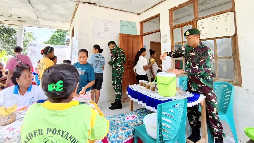 JAKARTA, KLIK7TV.CO.ID – Satgas Pamtas RI–RDTL Sektor Timur Yonarmed 12 Kostrad melalui Pos Turiscain melaksanakan kegiatan pelayanan kesehatan kepada balita di Posyandu Saunluli, Desa Maumutin, Kecamatan Raihat, Kabupaten Belu, Nusa Tenggara Timur. Kegiatan ini merupakan bentuk kepedulian Satgas dalam mendukung kesehatan dan tumbuh kembang anak di wilayah perbatasan.