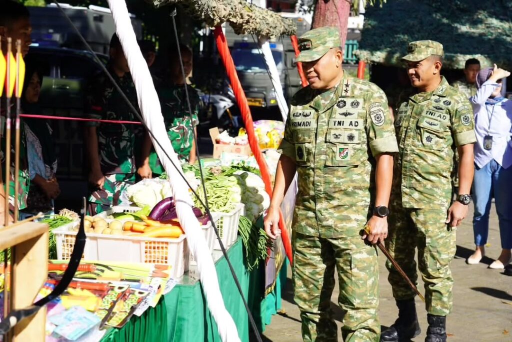 Suasana bazar pun terasa meriah dan penuh kehangatan. Senyum prajurit yang berbaur dengan masyarakat, aroma kuliner yang menggoda, serta interaksi hangat di setiap lapak menjadi gambaran nyata kedekatan TNI dengan rakyat.