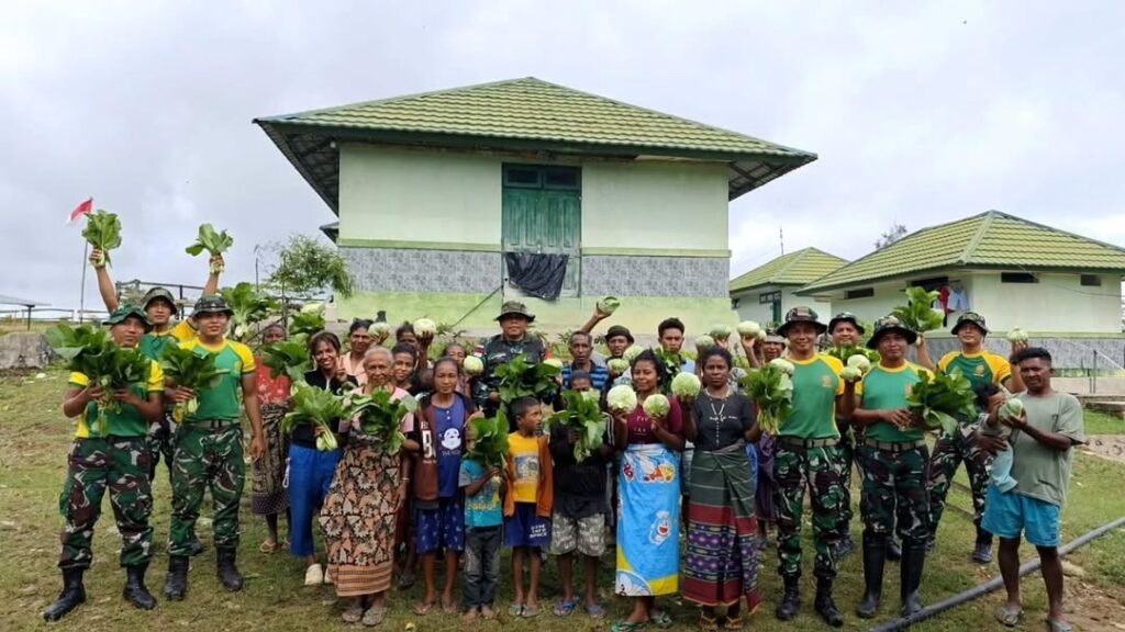 NTT , KLIK7TV.CO.ID – Personel Pos Fohuk Satgas Pamtas RI-RDTL Sektor Timur Yonarmed 12 Kostrad melaksanakan kegiatan penyuluhan ketahanan pangan serta panen sayur bersama warga Dusun Piebulak, Desa Loonuna, Kecamatan Lamaknen Selatan, Kabupaten Belu. Senin (17/11/2025).