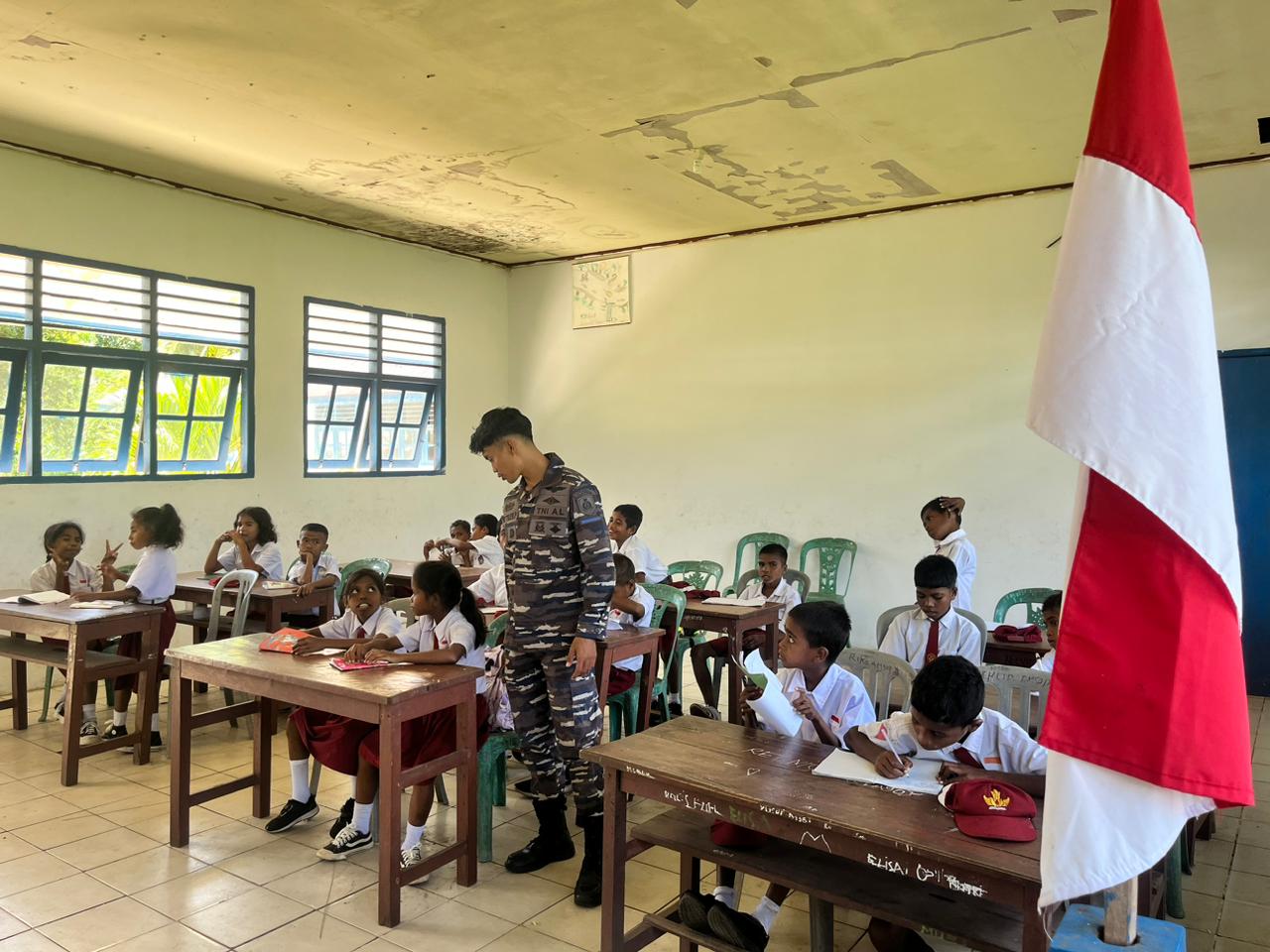 Aktivitas belajar mengajar di sekolah tersebut kembali berjalan berkat inisiatif dan kontribusi nyata dari personel Lanudal Aru yang turut mengambil peran sebagai tenaga pengajar. Dalam pelaksanaannya, para prajurit TNI AL ini bersinergi dengan tenaga pendidik setempat, yakni satu guru honorer, Ibu Cindi Tirjuil, serta satu guru sukarelawan, Ibu Regina Tiljur, yang dengan penuh dedikasi mendidik anak-anak di wilayah tersebut.