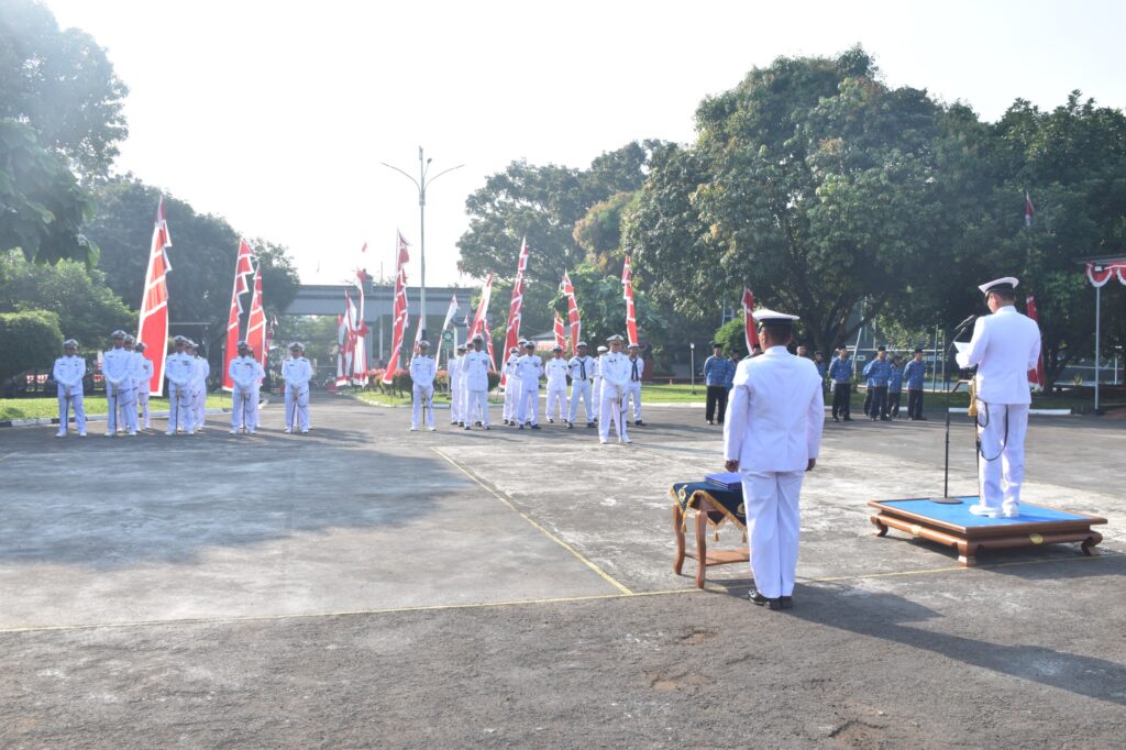 PONDOK LABU, KLIK7TV.CO.ID – Dalam rangka menggelorakan semangat kemerdekaan, Sekretaris Dinas Penelitian dan Pengembangan Angkatan Laut (Sekdislitbangal) Kolonel Laut (E) Dr. Frankie Madethen mewakili Kadislitbangal Laksma TNI Mulyatna, S.T., memimpin jalannya upacara Hari Ulang Tahun (HUT) Republik Indonesia ke-80 yang mengusung tema, “Bersatu Berdaulat, Rakyat Sejahtera, Indonesia Maju”, bertempat di Lapangan Apel Dislitbangal, Pondok Labu, Jakarta Selatan. Minggu, 17 Agustus 2025.