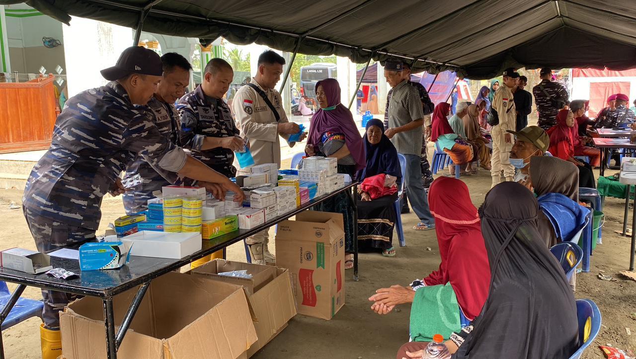 Seusai pemasangan tenda, tim kesehatan TNI AL memberikan pelayanan medis gratis kepada masyarakat, dengan total 109 pasien yang terdiri dari pemeriksaan kesehatan umum dan gigi. Selain itu, masyarakat juga mendapatkan penyuluhan kesehatan gigi dan mulut pasca bencana yang disampaikan oleh dokter gigi dari Puskesal.