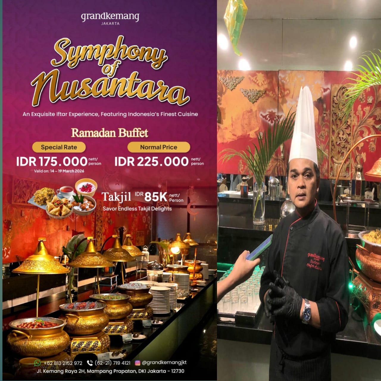 Melalui “Symphony of Nusantara”, Grandkemang Hotel menghadirkan harmoni cita rasa dalam suasana hangat dan elegan, menjadikan momen berbuka puasa lebih berkesan bersama keluarga, sahabat, dan kolega.