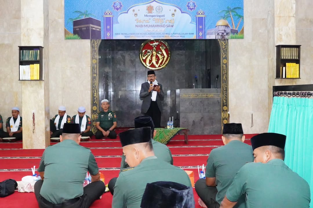 Peringatan Isra’ Mi’raj tersebut menjadi momentum pembinaan rohani guna memperkokoh keimanan dan ketakwaan prajurit, sekaligus meneladani akhlak mulia Rasulullah SAW dalam kehidupan sehari-hari maupun pelaksanaan tugas pengabdian kepada bangsa dan negara.