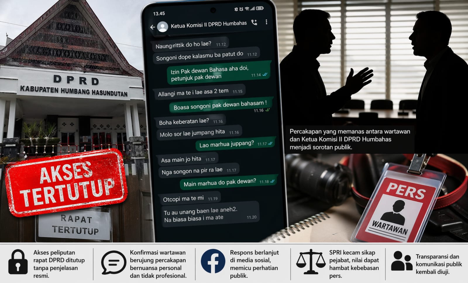 Polemik terkait transparansi rapat di DPRD Kabupaten Humbang Hasundutan memasuki fase yang lebih tajam. Bukan lagi semata soal akses peliputan yang tertutup, tetapi juga tentang bagaimana respons pejabat publik ketika dikonfirmasi—dan bagaimana respons itu dipersepsikan oleh publik.