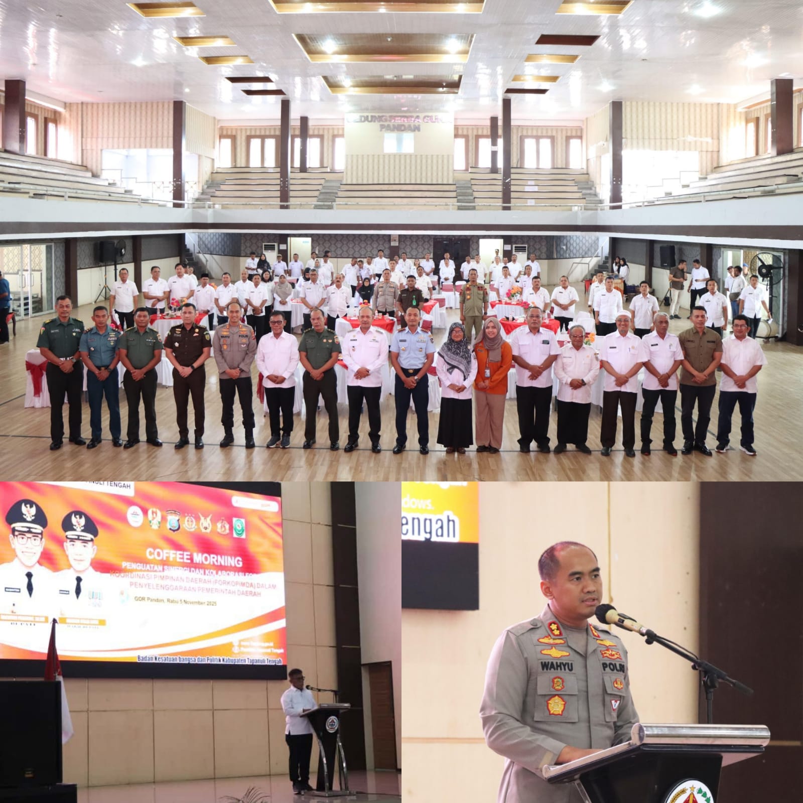 TAPTENG. KLIK7TV.CO.ID – Kapolres Tapanuli Tengah, AKBP Wahyu Endrajaya, S.I.K., M.Si., hadir dalam kegiatan Coffee Morning yang berfokus pada Penguatan Sinergi dan Kolaborasi Forum Komunikasi Pimpinan Daerah (Forkopimda), bertempat di Gedung Serbaguna GOR Pandan, Rabu 05/11 – 2025