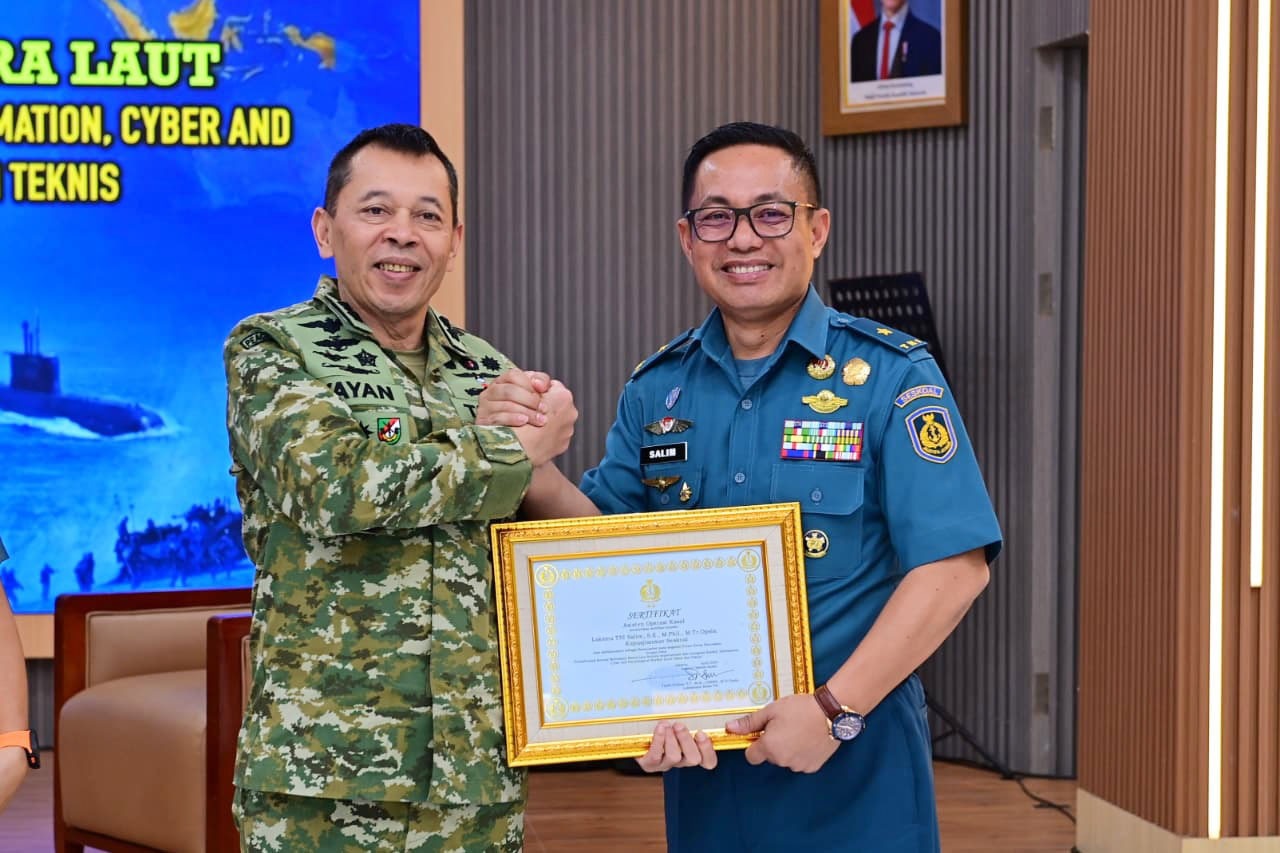 JAKARTA, KLIK7TV.CO.ID – Kepala Pusat Pengkajian Maritim (Kapusjianmar) Sekolah Staf dan Komando Angkatan Laut (Seskoal) Laksamana Pertama TNI Salim, S.E., M.Phil., M.Tr.Opsla. menghadiri Focus Group Discussion (FGD) Staf Operasi Angkatan Laut (Sopsal) sebagai narasumber yang dibuka oleh Asisten Operasi Kepala Staf Angkatan Laut (Asops Kasal) Laksamana Muda TNI Yayan Sofiyan, S.T., M.Si., CHRMP., M.Tr.Opsla.. Kegiatan ini membahas tema ,Konsep Bertempur Matra Laut Melalui Implementasi dan Integrasi Seabed, Information, Cyber and Psychological Warfare Level Taktis dan Teknis”, bertempat di selasar bawah Denma Mabesal, Cilangkap, Jakarta Timur, Senin (13/04/2026).