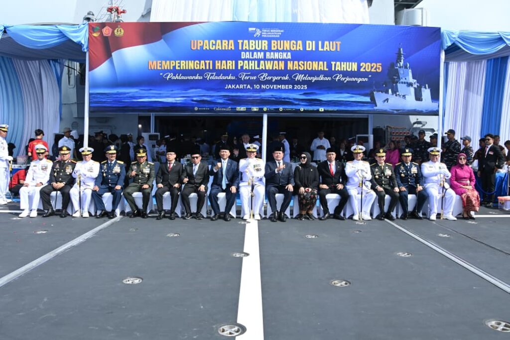 JAKARTA, KLIK7TV.CO.ID – Kepala Staf TNI Angkatan Laut (Kasal) Laksamana TNI Dr. Muhammad Ali, memimpin Peringatan Hari Pahlawan tahun 2025 dari atas KRI Brawijaya-320 yang berlayar di Teluk Jakarta, Senin (10/11). Dalam kesempatan ini dilaksanakan Tabur Bunga di laut sebagai simbolis dalam mengenang jasa serta nilai-nilai perjuangan para pahlawan yang telah gugur, dan tema peringatannya tahun ini, “Pahlawanku Teladanku, Terus Bergerak, Melanjutkan Perjuangan”.