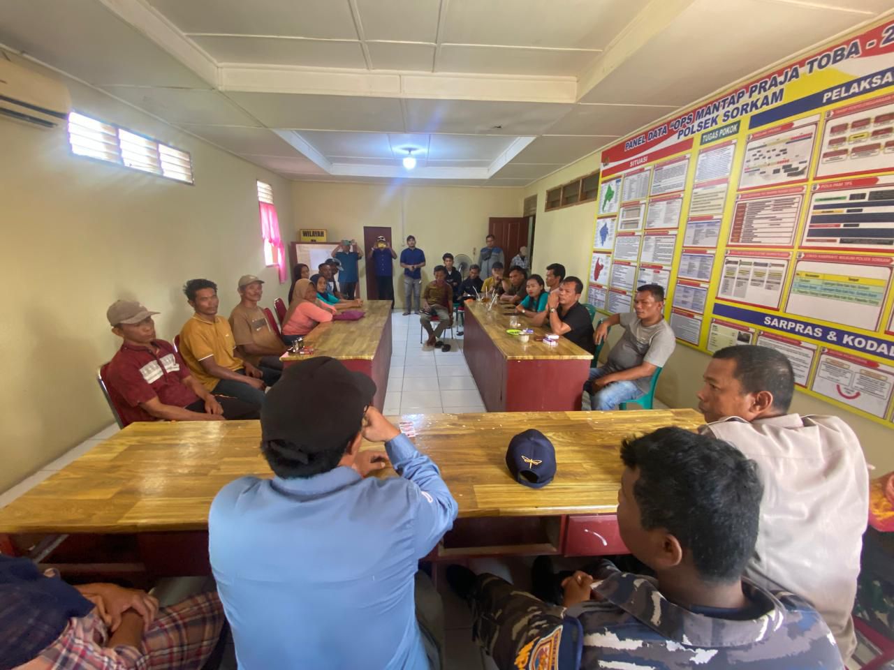 Kegiatan mediasi berlangsung di Aula Polsek Sorkam pada Senin, 18 Agustus 2025, pukul 14.30 WIB. Proses ini dipimpin oleh Kanit Binmas Polsek Sorkam, Aiptu Indra Gunawan.