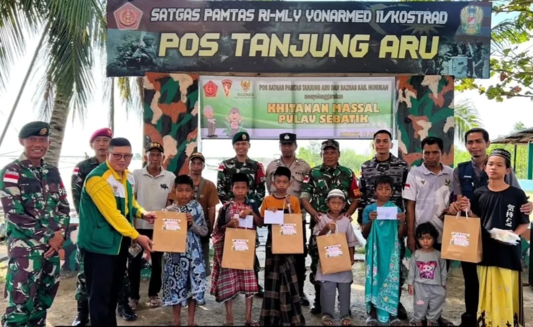 SEBATIK, KLIK7TVCKO.CO.ID – Dalam rangka meningkatkan kepedulian sosial di wilayah perbatasan, Satgas Pamtas Yonarmed 11 Kostrad Pos Tanjung Aru bekerja sama dengan Badan Amil Zakat Nasional (BAZNAS) melaksanakan kegiatan khitanan massal yang terletak di Desa Tanjung Aru, Kecamatan Sebatik Timur, Kabupaten Nunukan, Kalimantan Utara. Minggu (13/7/2025).