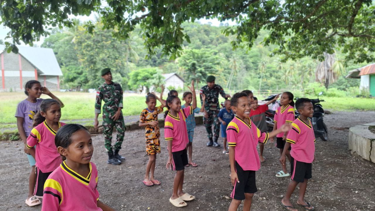 Danpos Aplal, Letda Arh Arya, menyampaikan bahwa kebahagiaan anak-anak menjadi motivasi tersendiri bagi prajurit dalam menjalankan tugas pengabdian.