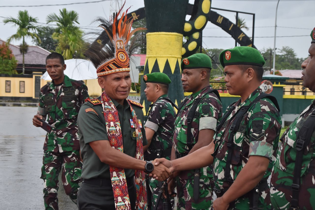 TIMIKA, KLIK7TV.CO.ID – Dalam suasana penuh semangat meskipun diguyur gerimis, Kodim 1710/Mimika menggelar tradisi penyambutan Dandim baru Letkol Inf Jozanda beserta Ketua Persit KCK Cabang XXXV, Ny. Jozanda, di Makodim 1710/Mimika, Senin (06/04/2026).