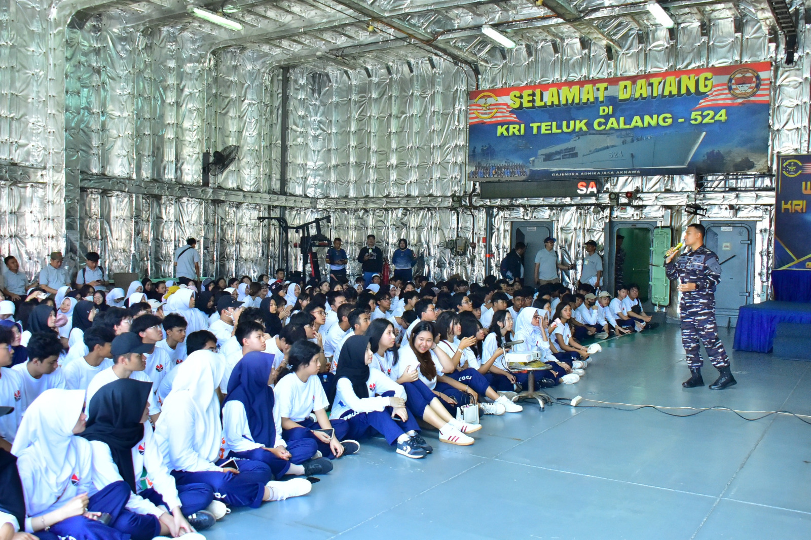 Selama kegiatan, para siswa mendapatkan penjelasan langsung dari prajurit Kolinlamil mengenai fungsi dan peran KRI Teluk Calang-524 sebagai kapal angkut militer, termasuk bagaimana kesiapan prajurit TNI AL dalam melaksanakan tugas operasi dan bantuan kemanusiaan. Para peserta juga berkesempatan berkeliling kapal, mengamati ruang kendali, geladak, serta fasilitas yang digunakan dalam mendukung berbagai misi Kolinlamil.