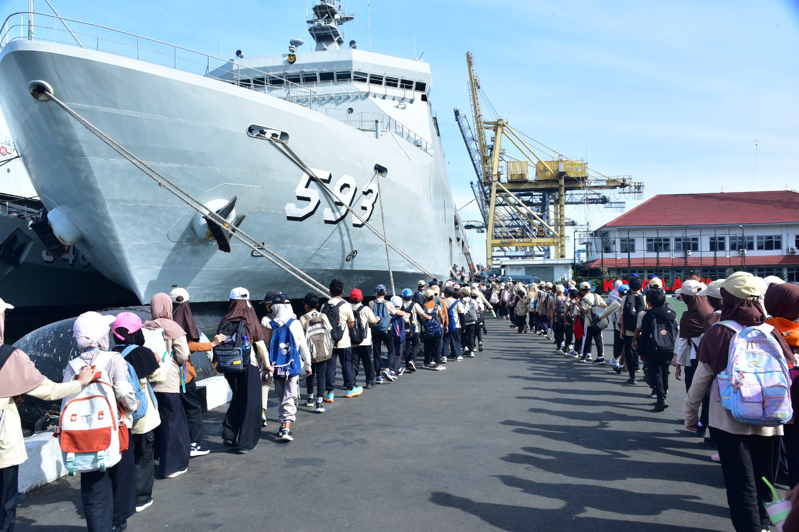 Bertempat di Dermaga Mako Kolinlamil, Tanjung Priok, Jakarta Utara, para siswa SD Islam Assuryaniyah Bekasi melaksanakan field trip untuk menyaksikan langsung kemegahan KRI Banda Aceh-593 (KRI BAC-593), Rabu (26/11). Program wisata edukasi “Warship Tour” yang digagas Kolinlamil ini mendapat respons positif dari pihak sekolah karena memberikan pengalaman nyata, membuka cakrawala pengetahuan, sekaligus menjawab rasa penasaran para pelajar tentang dunia kapal perang Republik Indonesia.