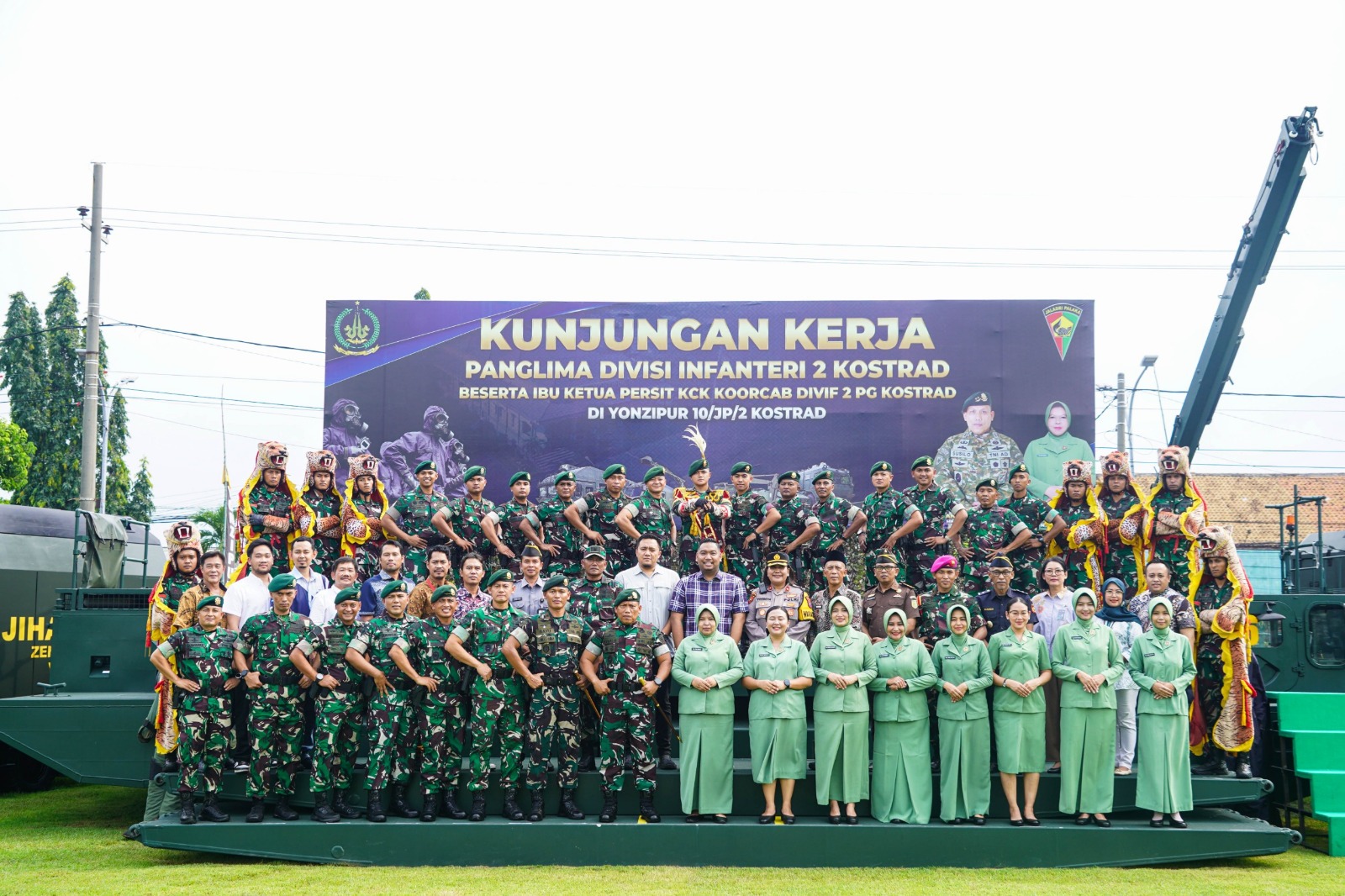 PASURUAN,KLIK7TV.CO.ID – Batalyon Zeni Tempur 10 Kostrad menerima kunjungan kerja Panglima Divisi Infanteri 2 Kostrad Mayor Jenderal TNI Susilo, beserta Ketua Persit KCK Koorcab Divif 2 PG Kostrad, di Mayonzipur 10, Pasuruan, Jawa Timur. Jumat (14/03/2025)