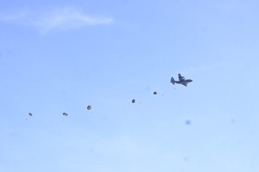 MAKASSAR, KLIK7TV. CO. ID – Lanud Sultan Hasanuddin mendukung pelaksanaan Latihan Terjun Payung Pendidikan Dasar Para Divisi Infanteri 3 Kostrad TA. 2025 dengan Droping Zone di Grass Trip Runway 13/31 Lanud Sultan Hasanuddin, Kamis (23/10/2025).