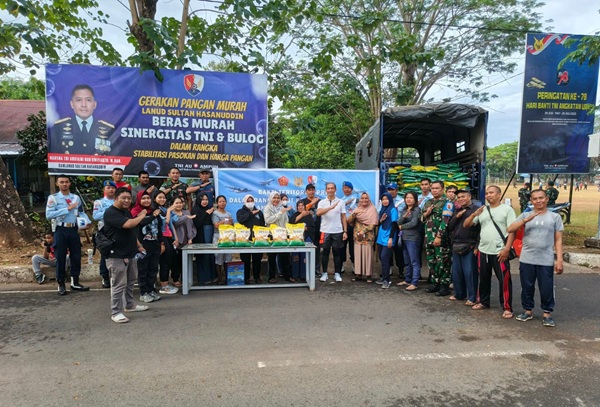 Komandan Lanud Sultan Hasanuddin Marsma TNI Arifaini Nur Dwiyanto, M.Han., menegaskan bahwa kegiatan ini merupakan bentuk kepedulian TNI AU dalam mendukung ketahanan pangan serta menjaga daya beli masyarakat.