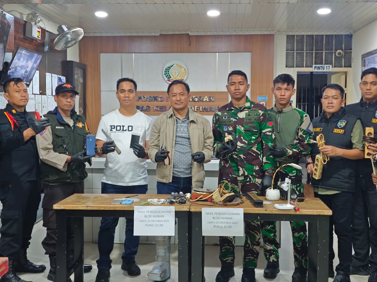 JAKARTA, KLIIK7TV.CO.ID – Lembaga Pemasyarakatan (Lapas) Kelas I Cipinang laksanakan kegiatan penggeledahan kamar hunian Warga Binaan pada Sabtu malam (25/10) mulai pukul 21.00 WIB hingga selesai. Razia dilakukan secara acak di Blok A, Blok B, Blok C Aula, dan Blok D, melibatkan petugas lintas bidang serta dukungan dari unsur TNI dan Kepolisian.