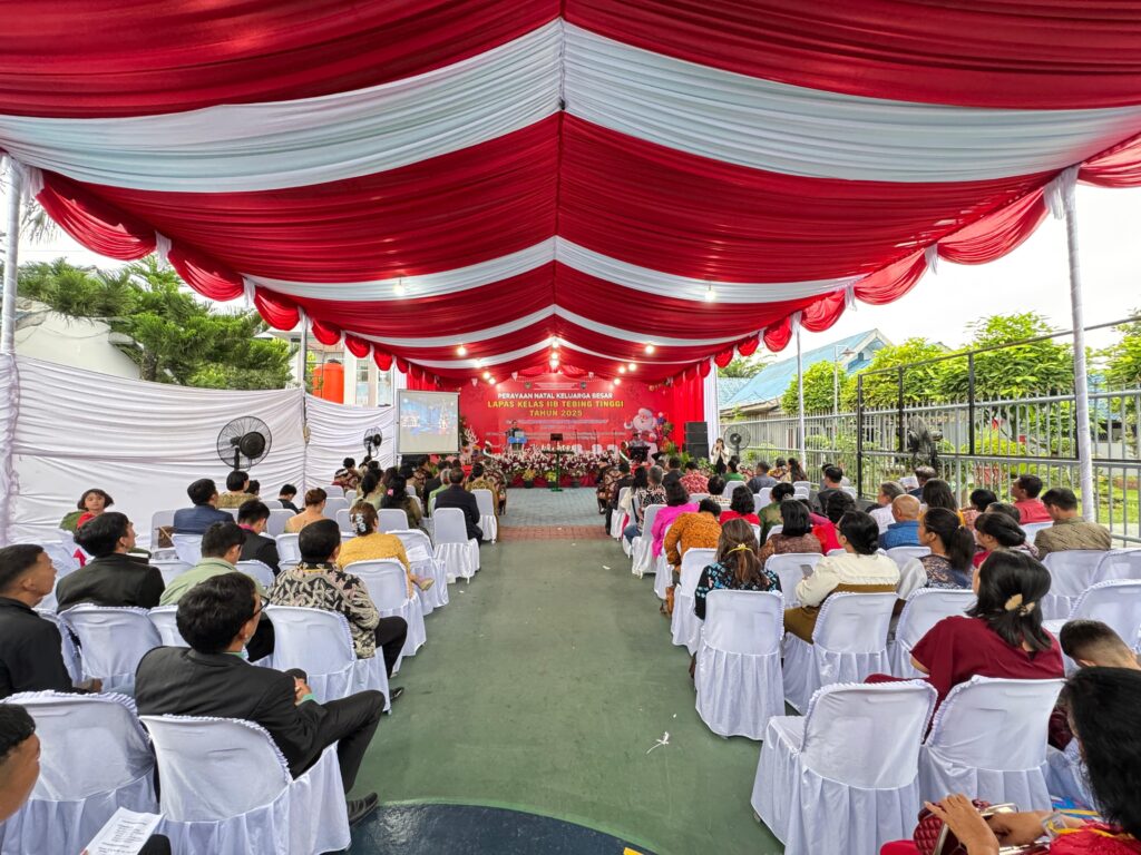 TEBING TINGGI, KLIK7TV.CO.ID i – Lembaga Pemasyarakatan (Lapas) Kelas IIB Tebing Tinggi menggelar Perayaan Natal Pegawai dan Warga Binaan Pemasyarakatan (WBP) dengan tema “Allah Hadir Untuk Menyelamatkan Keluarga” (Matius 1:21–24), Sabtu (13/12/2025) sore. Kegiatan berlangsung khidmat di Lapangan Apel Lapas Tebing Tinggi mulai pukul 14.00 WIB hingga selesai.