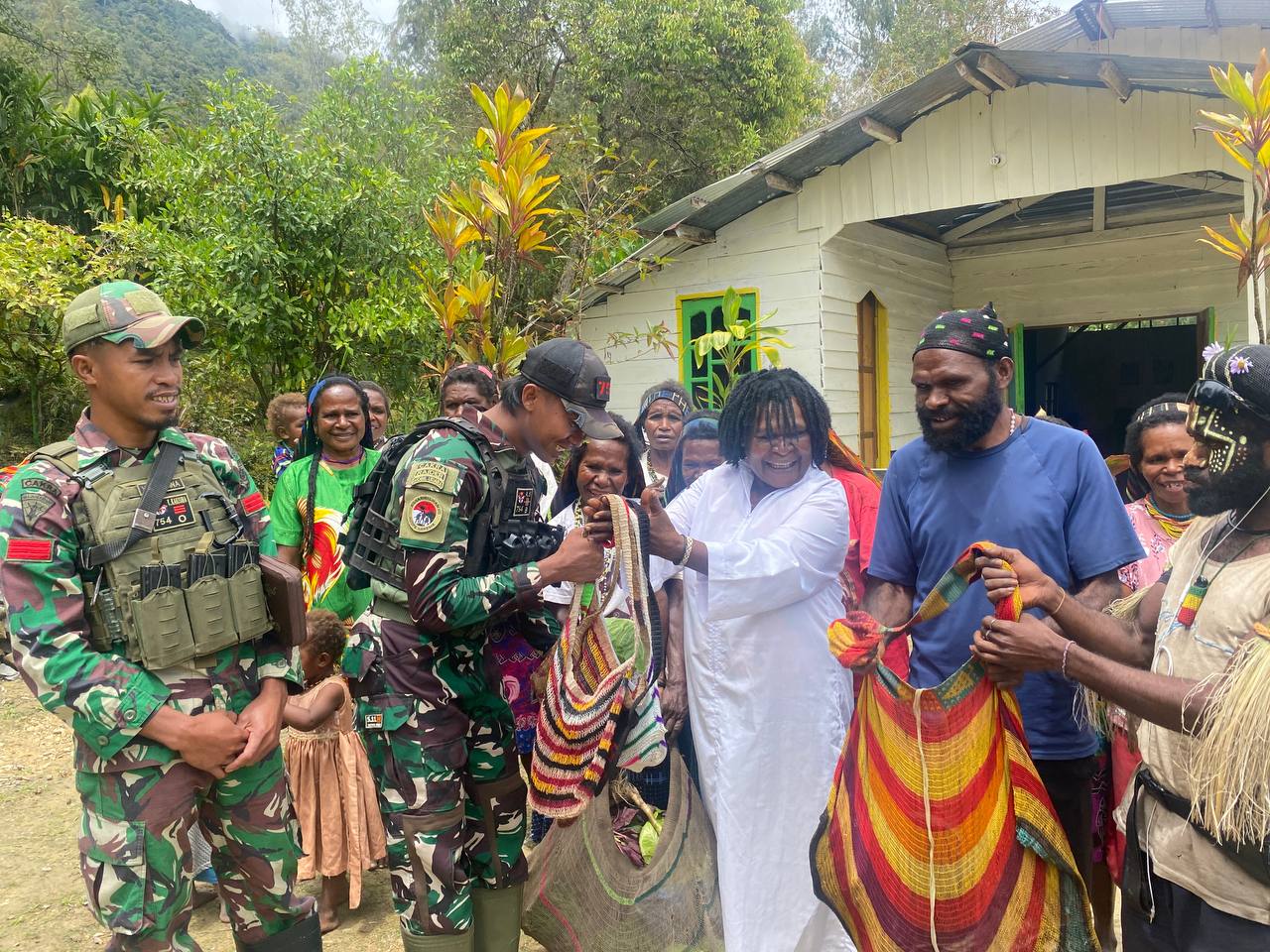 Bapak Yance Bagubau, Ketua Gereja Khatolik Chatarina mengucapkan terimakasih kepada Prajurit Raja. “Karena kasih Allah yang besar kepada dunia dan perhatian nya dari Bapak Tentara (Satgaster Yonif) 754, dan Bapak (Satgas Koops TNI) Habema kami mengucap terima kasih sebesar-besar nya.”@Red