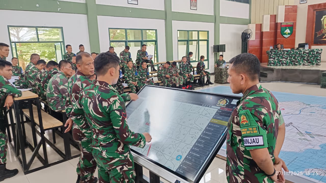 NATUNA, KLIK7TV.CO.ID – Pusat Simulasi Tempur (Pussimpur) Kodiklatad mendukung modernisasi latihan TNI AD melalui penerapan Meja Desain Operasi (MDO) pada kegiatan Tactical Floor Game (TFG) sebagai puncak Latihan Posko I (Latposko I) YTP Batalyon Komposit 1/Gardapati Kodam XIX/Tuanku Tambusai, Natuna, Jumat (7/11/2025).