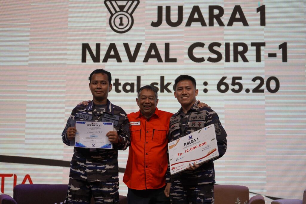 Kepala Badan Siber dan Sandi Negara (BSSN) RI Letnan Jenderal TNI (Purn.) Nugroho Sulistyo Budi memberikan penghargaan langsung kepada Tim TNI AL di bawah binaan Kasatsiberal Kolonel Laut (E) Masnal Samian, S.H., M.Si yang terdiri dari Kapten Laut (E) Robby Wahyu Hutomo, S.S,T.TP. CEH, CHFI, CySA+, ECIH. dan Serma PDK Timur Yulis Santosa, S.Kom, CEH, CND, CySA+, ECIH.