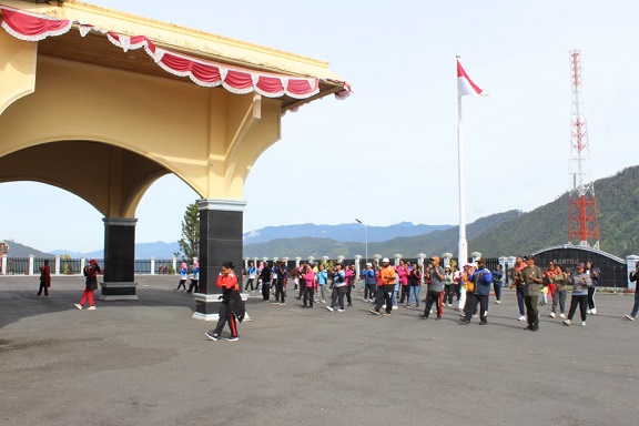 Mulia – Kodim 1714/Puncak Jaya dan Persit Kartika Chandra Kirana mengikuti olahraga bersama dengan jajaran pemerintah daerah Kabupaten Puncak Jaya pada Jumat (23/01/2025).
