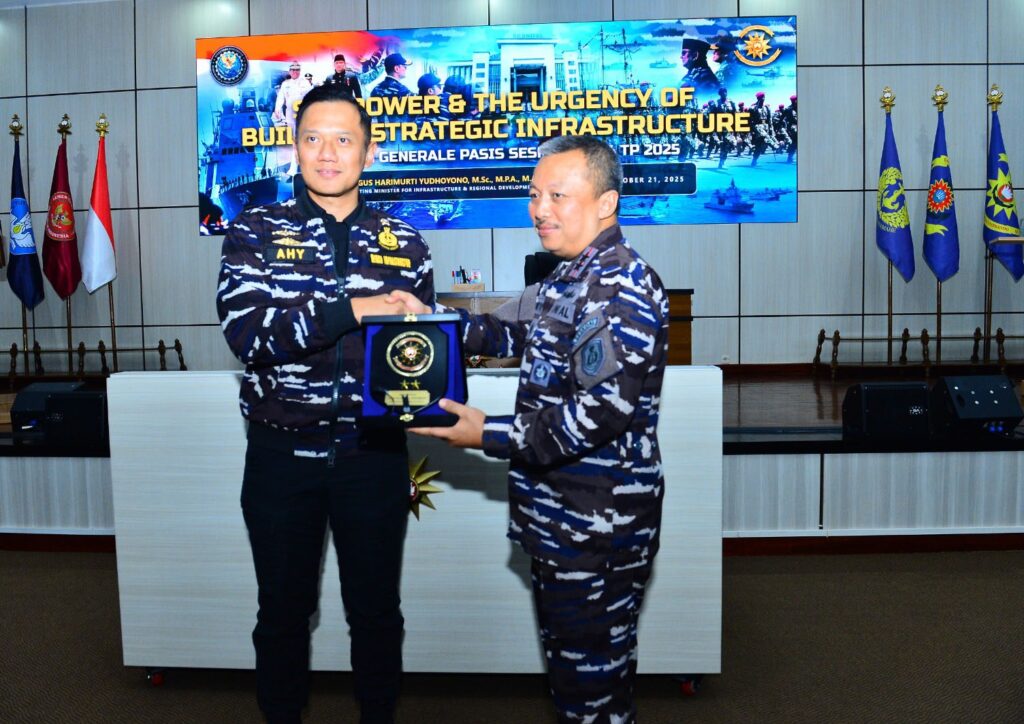 CIPULIR, KLIK7TV.CO.ID – Komandan Sekolah Staf dan Komando Angkatan Laut (Danseskoal) Laksamana Muda TNI Ariantyo Condrowibowo menerima kedatangan Menteri Koordinator (Menko) Bidang Infrastruktur dan Pembangunan Kewilayahan RI Dr. Agus Harimurti Yudhoyono, M.Sc., M.P.A., M.A. dalam rangka memberikan kuliah umum kepada Perwira Siswa Pendidikan Reguler (Pasis Dikreg) Seskoal angkatan ke-64 TA 2025 dengan judul “Sea Power and the Urgency of Building Strategic Infrastructure”, dihadiri Kepala Staf Angkatan Laut (Kasal) Laksamana TNI Dr. Muhammad Ali, S.E., M.M., M.Tr.Opsla, bertempat di amphitheater gedung Samadikun Seskoal, Cipulir, Jakarta Selatan, Selasa (21/10/2025)