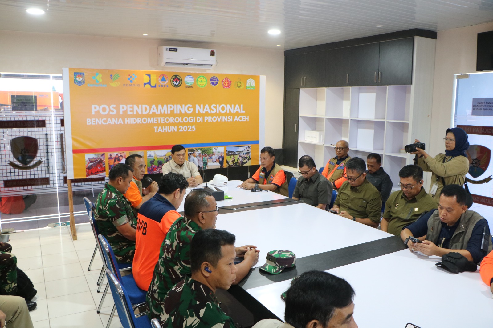 Dalam kunjungannya, Djamari Chaniago memimpin rapat bersama BNPB dan Komandan Lanud Sultan Iskandar Muda, Kolonel Nav Sudaryanto, S.M. Rapat tersebut membahas langkah percepatan distribusi bantuan dan penanganan dampak bencana di sejumlah wilayah yang masih terisolir.