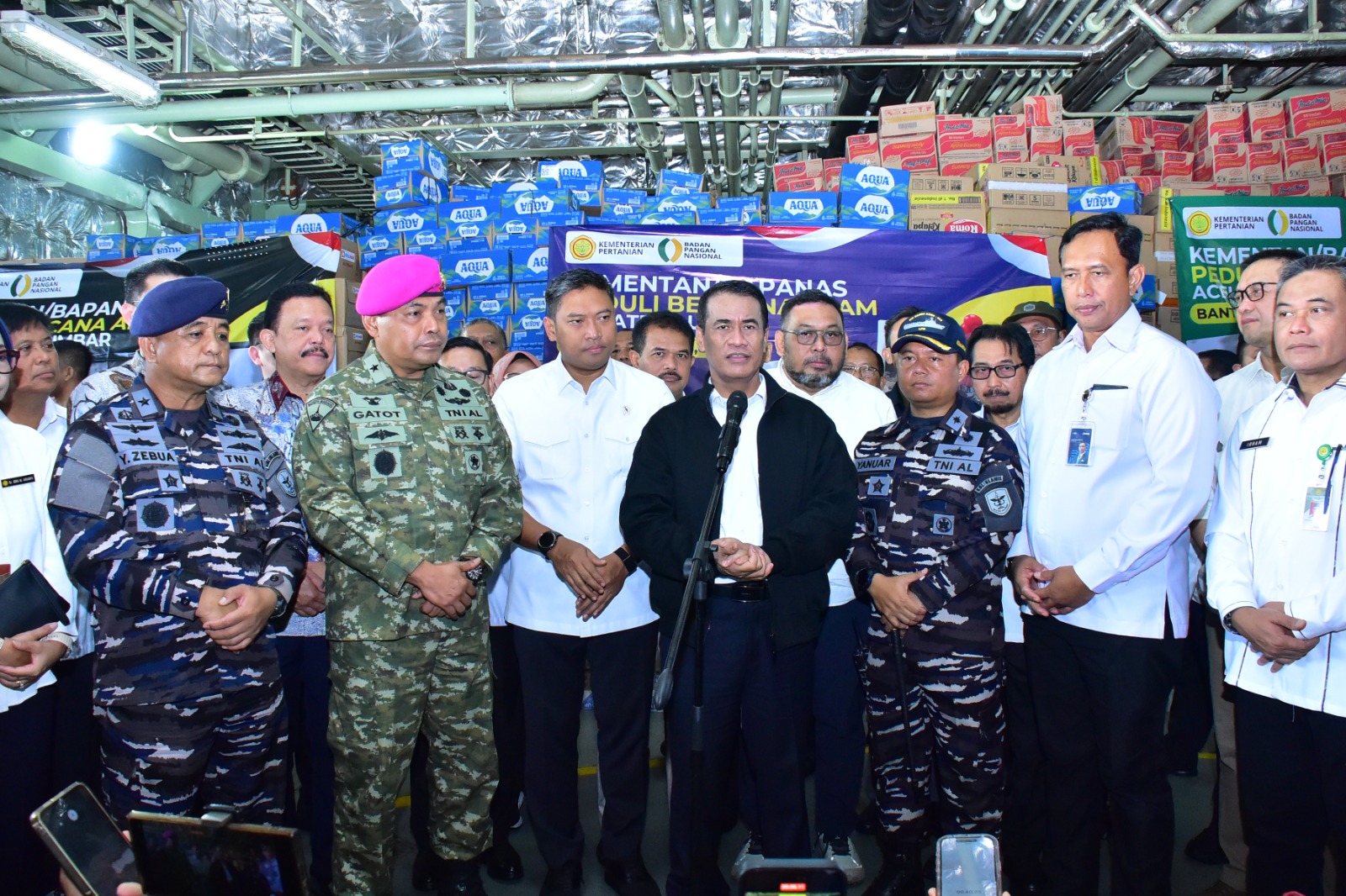 JAKARTA, KLIK7TV.CO.ID – Kegiatan Menteri Pertanian (Mentan) RI Dr. Ir. H. Andi Amran Sulaiman, M.P. dalam rangka peninjauan dan penyerahan bantuan untuk korban bencana di wilayah Sumatra berlangsung di Markas Komando Lintas Laut Militer (Kolinlamil) Jum’at (5/12). Bantuan tersebut selanjutnya akan diberangkatkan menggunakan KRI Banda Aceh-593, salah satu unsur Kolinlamil yang dikomandani Letkol Laut (P) Yanuar Rizky Widjaya, M.Tr.Opsla., dan disiapkan sebagai kapal angkut utama dalam distribusi bantuan ke daerah terdampak.