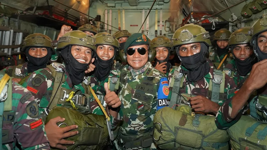 Selain melakukan pemeriksaan di darat, Pangdivif 3 Kostrad juga turut naik ke pesawat bersama para siswa untuk menyaksikan secara langsung proses penerjunan dari udara.@Red