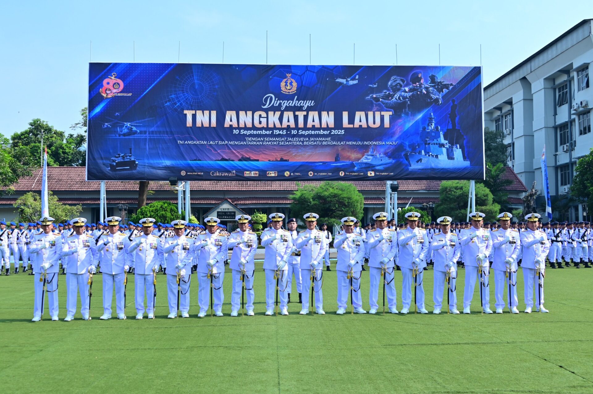 Upacara khidmat tersebut dipimpin langsung Kepala Staf Angkatan Laut (Kasal) Laksamana TNI Muhammad Ali, S.E., M.M., M.Tr.Opsla., serta didampingi Ketua Umum Jalasenastri Ny. Fera Muhammad Ali. Delapan dekade pengabdian TNI AL menjadi momentum penting untuk meneguhkan kembali semangat juang, menelaah perjalanan sejarah, mengevaluasi capaian, dan menata arah strategis demi mendukung kekuatan maritim bangsa. Tahun ini, peringatan mengusung tema: “Dengan Semangat Jalesveva Jayamahe, TNI Angkatan Laut Siap Mengantarkan Rakyat Sejahtera, Bersatu, Berdaulat Menuju Indonesia Maju.”
