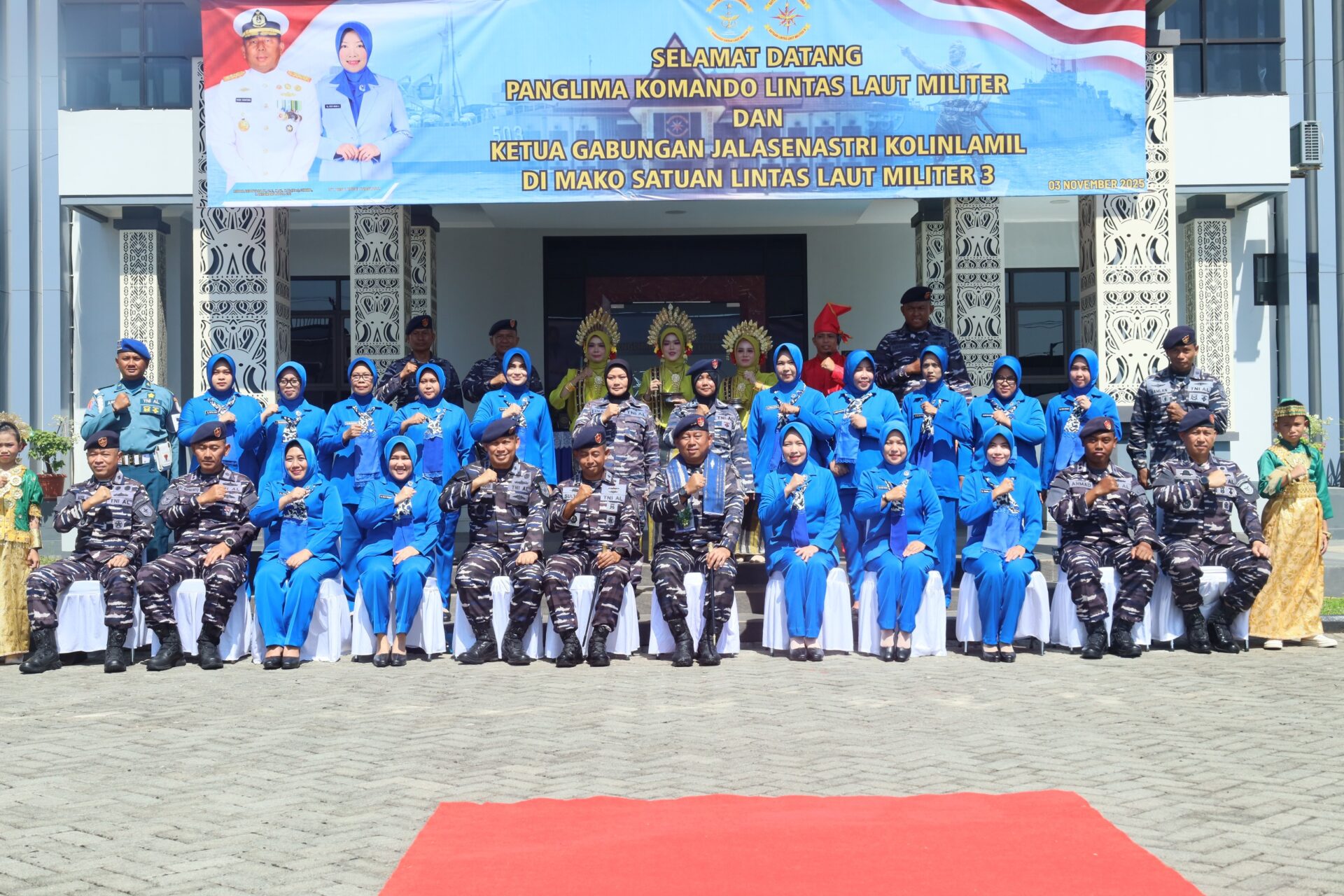 Kedatangan Pangkolinlamil disambut hangat oleh Komandan Satlinlamil 3 Kolonel Laut (P) Sulthon M. Firdaus, M.Tr.Opsla., bersama Ketua Cabang 4 Gabungan Jalasenastri Kolinlamil Ny. Alin Sulthon, serta seluruh prajurit dan PNS Satlinlamil 3 Makassar di Mako Satlinlamil 3.