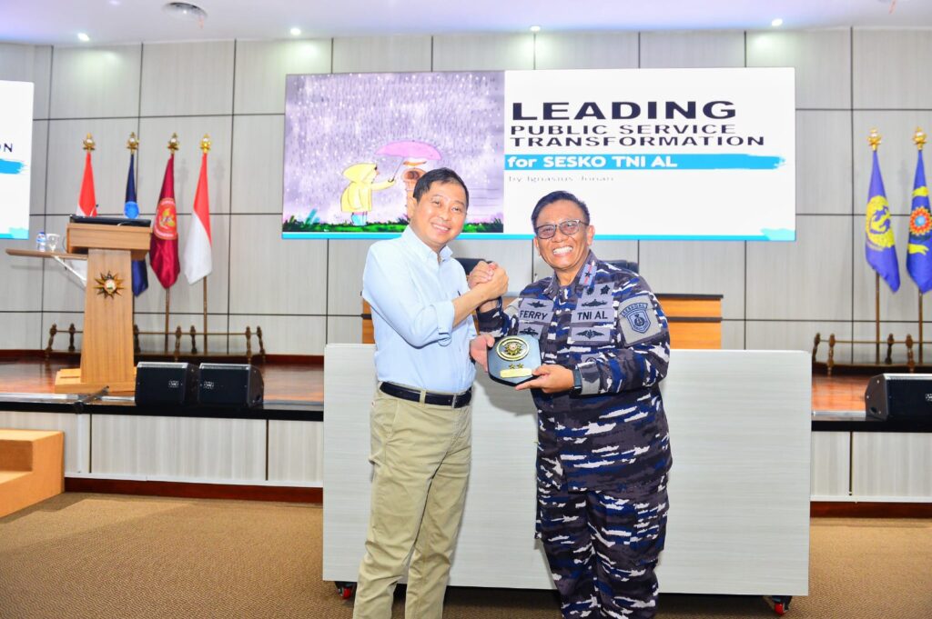 CIPULIR, KLIK8TV.CO.ID -Komandan Sekolah Staf dan Komando Angkatan Laut (Danseskoal) Laksamana Muda TNI Ariantyo Condrowibowo diwakili Wadan Seskoal Laksamana Pertama TNI Dr. Ferry Supriady, S.T., M.M., M.Tr.Opsla., CIQaR menerima kedatangan Bapak Dr. (HC) Drs. Ignasius Jonan, Ak., M.A., dalam rangka memberikan kuliah umum kepada Perwira Siswa Pendidikan Reguler (Pasis Dikreg) Seskoal angkatan ke-64, bertempat di amphiteater gedung Samadikun Seskoal, Cipulir, Jakarta Selatan, Jumat (7/11/2025).