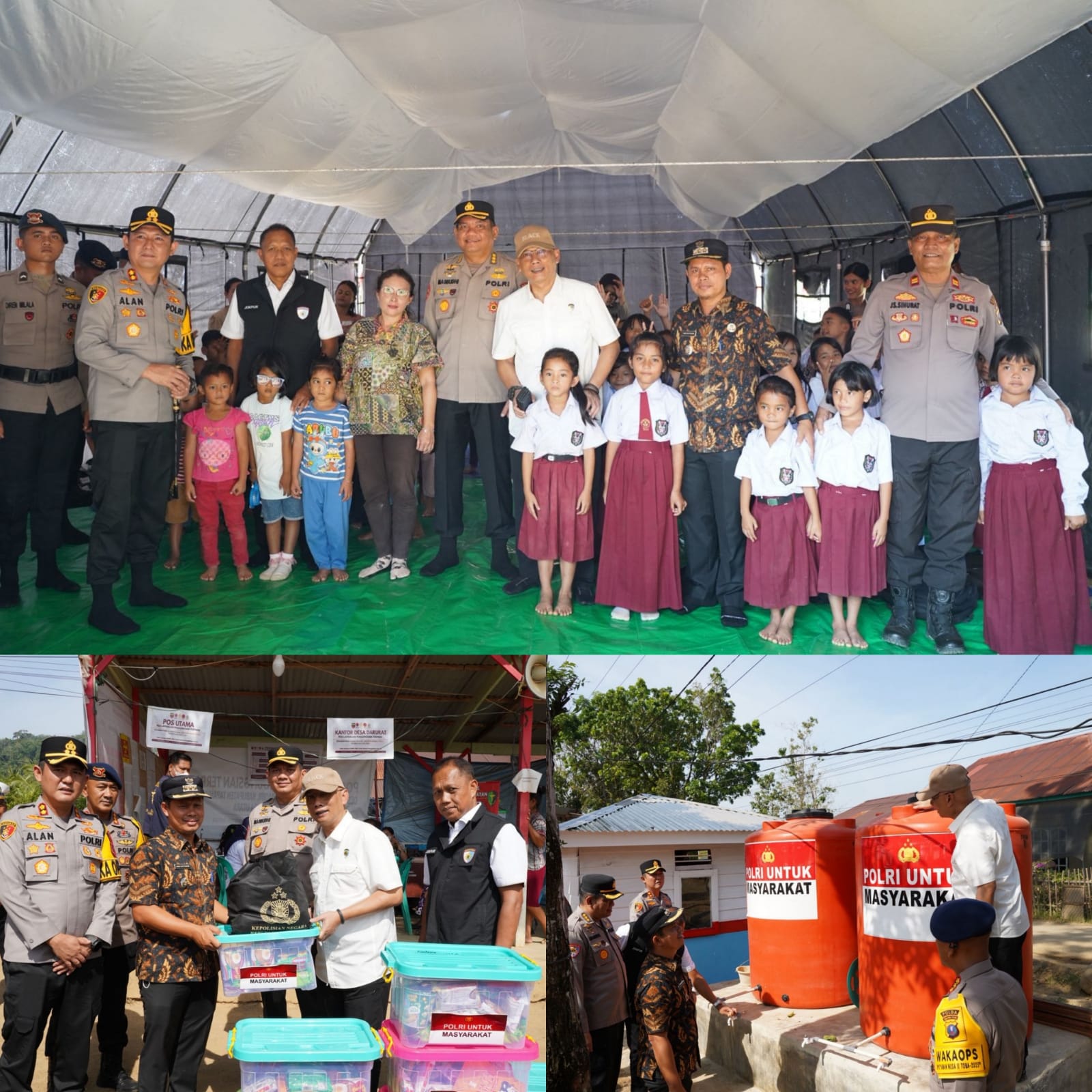 Brigjen Pol Susanto bersama tim juga berinteraksi langsung dengan anak-anak korban bencana di tenda pengungsian. Tim memberikan layanan trauma healing dan membagikan kudapan (snack) untuk menghibur siswa SD dan PAUD yang berada di lokasi.